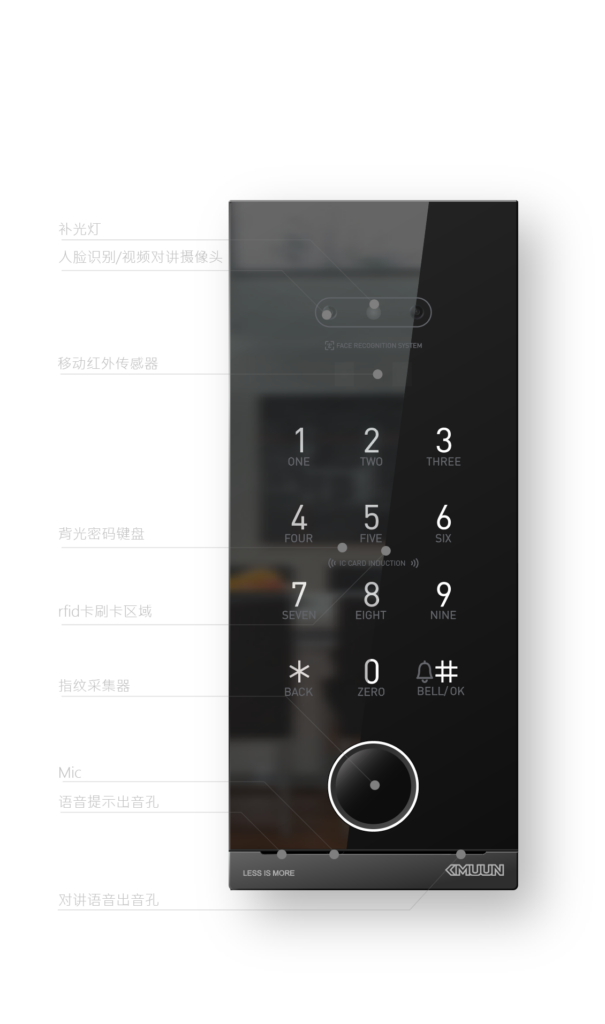 S1将密码键盘、人脸识别、门铃等核心功能集中在最便于操作的区域,其他地方保持平整干净——减少误触,提升效率。极简超薄的工艺是追求,S1采用全功能微型化集成技术,超薄嵌入式结构设计,室外机厚度仅10.5mm, 通过三大创新技术:堆叠式电路设计、一体化金属框架、零间隙贴合技术实现了极致纤薄,防水等级达IP65,有效抵御水汽侵蚀。更妙的是细节处理:扬声器被隐藏在金属与玻璃之间的窄缝中,既保证音质,又不破坏整体形态;